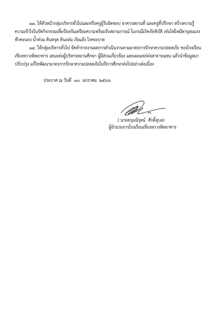 ประกาศโรงเรียนเชียงหวางพิทยาคาร เรื่อง นโยบายสถานศึกษาปลอดภัย
