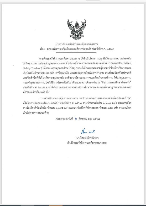 ได้รับคัดเลือกสถานศึกษาปลอดภัย ระดับดีเด่น ติดต่อกันปีที่ 5