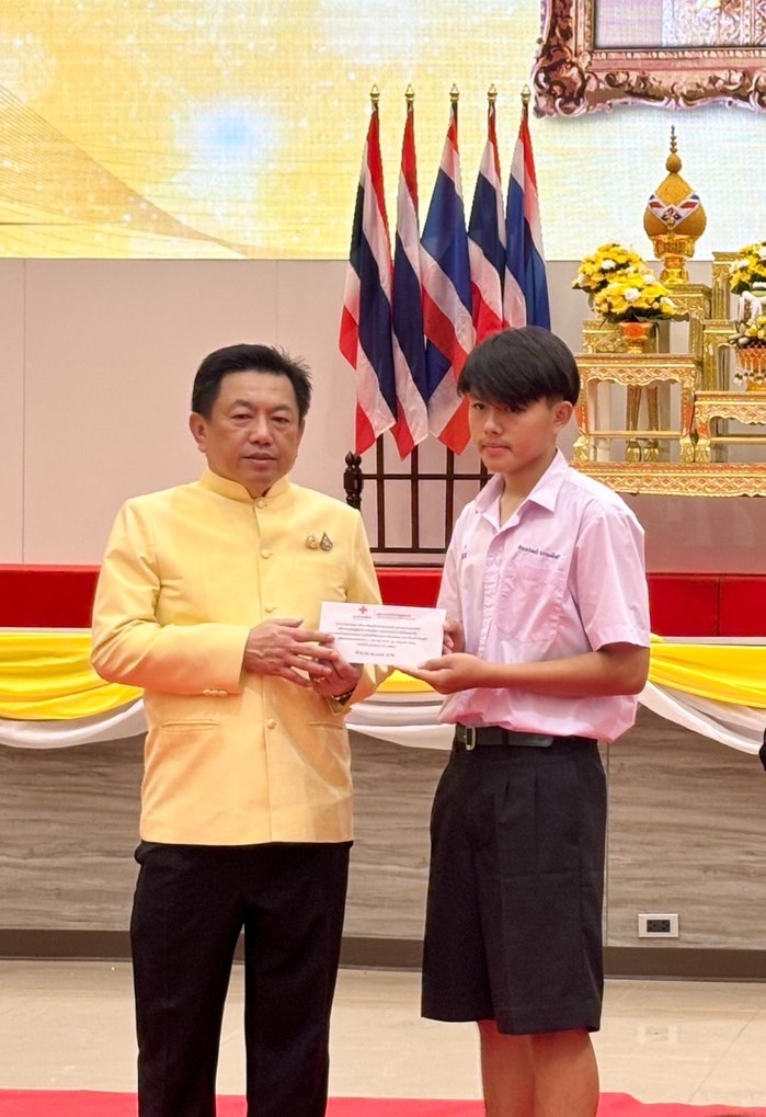 นายกัณฑวัฒน์ นาวงศ์ศรี นักเรียนชั้นมัธยมศึกษาปีที่ 5 เข้ารับทุน โครงการมอบทุนการศึกษาให้แก่เด็กนักเรียนเรียนดี แต่ขาดแคลนทุนทรัพย์ เพื่อช่วยเหลือผู้ด้อยโอกาสในสังคม เฉลิมพระเกียรติ เทิดไท้องค์ราชัน พระบาทสมเด็จพระปรเมนทรรามาธิบดีศรีสินทรมหาวชิราลงกรณ พระวชิรเกล้าเจ้าอยู๋หัว เฉลิมพระชนมพรรษาครบ 6 รอบ 72 พรรษา 28 กรกฎาคม 2567 ณ หอประชุมทองใหญ่ ศูนย์ราชการจังหวัดอุดรธานี