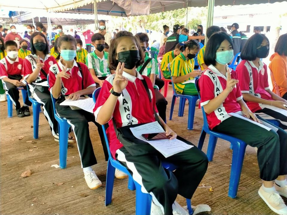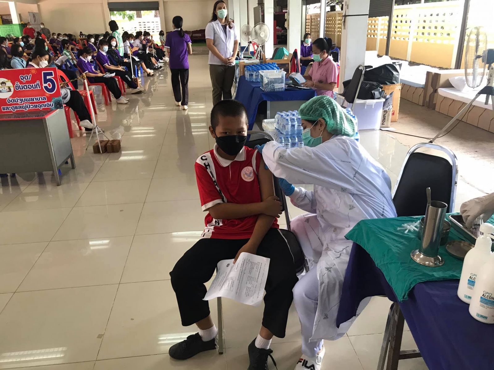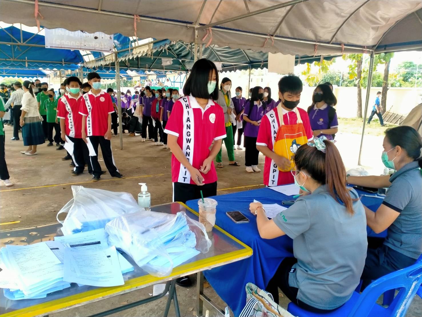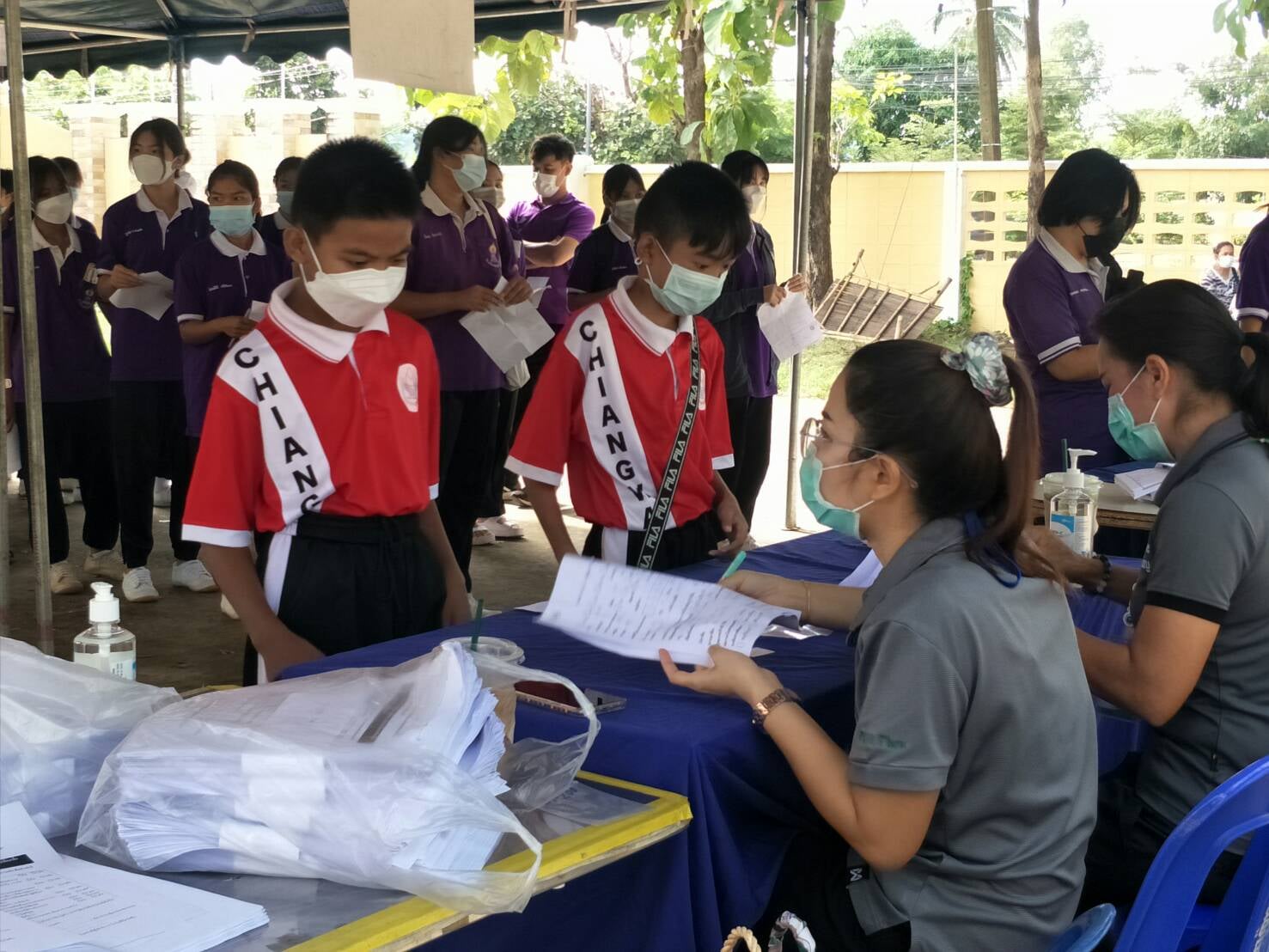 นักเรียนชั้นมัธยมศึกษาตอนต้น โรงเรียนเชียงหวางพิทยาคาร เข้ารับการฉีดวัคซีนป้องกันโรคติดต่อเชื้อไวรัสโคโรน่า