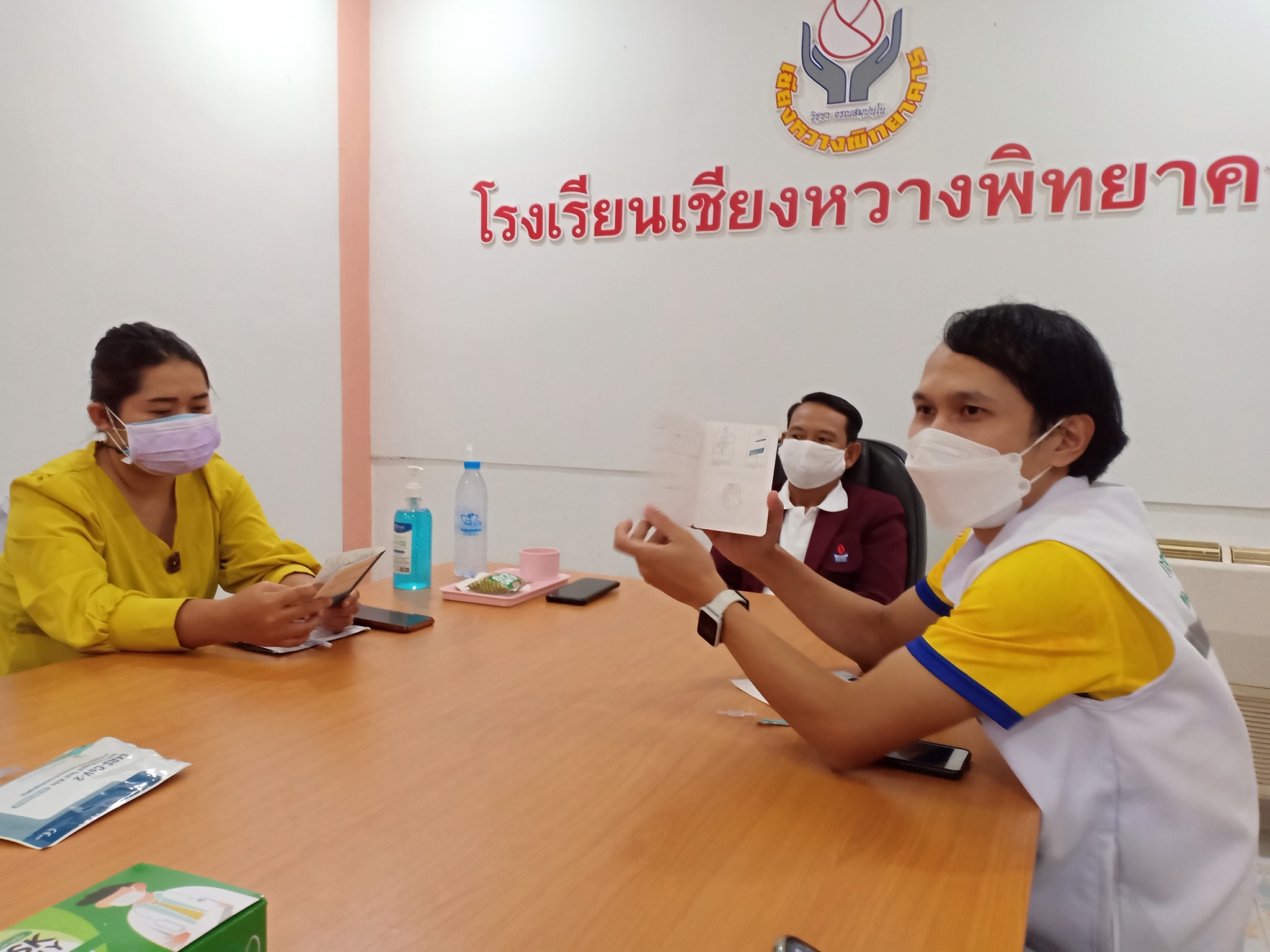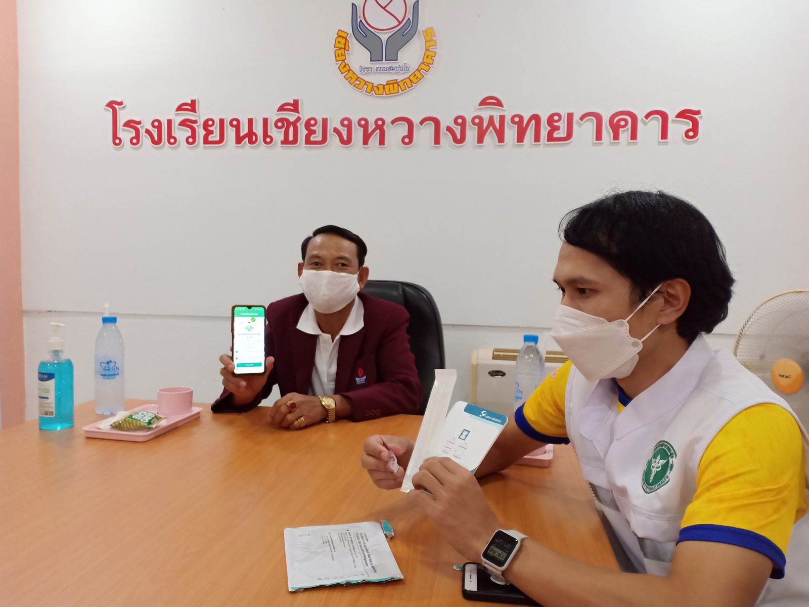 โรงพยาบาลส่งเสริมสุขภาพตำบลเชียงหวาง นำโดยนายศรเพชร กำไรทอง ให้ความรู้กับคณะครูและบุคลากร โรงเรียนเชียงหวางพิทยาคาร ในการสาธิตการใช้ ชุดตรวจ ATK